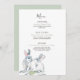Parfaitement charmant et rustique, mon menu de dîner présente vos meilleures recettes de Pâques avec fantaisie et une typographie festive encadrée par une verdure luxuriante et mes lapins peints à la main à l'aquarelle. Personnalisez votre menu en utilisant les champs fournis. Si vous souhaitez ajouter des lignes ou une personnalisation supplémentaires, cliquez sur "Personnaliser", faites défiler vers le bas et cliquez sur "Personnaliser davantage". Cette carte de menu correspond à ma suite de lapin de bois à l'aquarelle. Parfait pour les menus imprimés de baby shower, baptême, première année ou toute réunion de mariage printanière en forêt. Pour voir les articles correspondants, visitez www.zazzle.com/vginvites