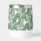 Ce design a des feuilles de bananes tropicales sur un arrière - plan rose. Au centre du dessous de verre se trouve une boisson fraîche à base de noix de coco avec un cocktail parapluie et une paille rayée. Vous pouvez personnaliser avec un nom !