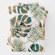 feuilles tropicaux turquoises et dorés brossent des traits de peinture sur papier d'emballage. Il présente des feuilles tropicaux à motifs avec des traits de pinceau en bleu turquoise et or et confettis. Vous pouvez le customiser et ajouter vos images ou graphiques.