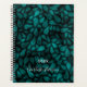 Un arrière - plan noir et turquoise avec un motif métallique de feuillage botanique. Personnalisez et ajoutez une année et un nom. Lettres blanches.