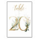 Jolie carte de numéro de table avec un motif botanique - une illustration aquarelle de feuilles vertes et dorées. Table 20. Veuillez vérifier tous les numéros disponibles