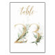 Belle carte de numéro de table avec un motif botanique - une illustration aquarelle de feuilles vertes et dorées. Table 23. Veuillez vérifier tous les numéros disponibles