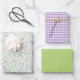 en vichy chèque et motif floral Daisy. Les couleurs comprennent le violet, le bleu, la lavande, le vert, l'orange, le jaune