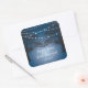 Faire-part de mariage moderne et branché avec arbre foncé sur arrière - plan bleu minuit avec lampes à cordes. Stickers pour les faveurs. Plus de panneaux mariages dans notre boutique : http://www.zazzle.co.uk/designbyredline