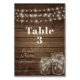 Feux rustiques Mason Jar Numéro de table Carte