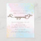 Aquarelle bleu rose Fiançailles de script de coeur. Un prix économique PETIT 4,5 po x 5,6 po alternatif. Disponible dans un STOCK SEMI-GLOSS 110 lb CARD qui est l'option par défaut (plus épais pour les invitations), OU un STOCK SATIN FINISH 80 lb THINNER PAPER (idéal pour les boîtiers). Les enveloppes sont en option et légèrement plus grandes que la taille de la carte. Une belle aquarelle est dans l'arrière - plan avec des éclaboussures d'or en haut à droite et en bas à gauche. Le fiançailles est installé dans un script élégant avec des swashes de coeur romantiques. Personnalisez facilement le reste du texte à vous.
