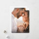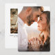 Partagez vos bonnes nouvelles à Noël avec ce faire-part de fiançailles/carte de Noël. Il comporte une seule photo pleine page avec les mots "joyeusement fiancés" sur le devant. Le o dans joyeusement est une bague de diamant. Le dos comporte un espace pour une autre photo et un court message.