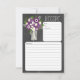 Carte de recette parfaite pour une fête de mariage champêtre ou peut-être que vous aimez simplement les pots Mason ! Un élégant pot Mason rempli de fleurs aux couleurs de violet aubergine clair et foncé avec des marguerites blanches et des fleurs sauvages. Un fond tableau noir est installé. Si vous avez des questions sur ce design ou si vous souhaitez une modification de couleur, veuillez m'envoyer un courriel à paula@labellarue.com Vérifiez également la Suite de mariage, les Cartes d'INVITATION, de RSVP, de RÉCEPTION et de PLACEMENT DES INVITÉS pour assortir !