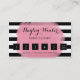 Carte fraîche et chic de fidélité de maquilleur avec des rayures noires et blanches et une tache rose de rouge à lèvres.