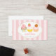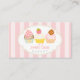 Des rayures rose pâle motif sur le arrière - plan. Il présente un étiquette blanc rétro et trois illustrations de cupcake (glaçage, fraise, biscuits). Cute, légère, sophistiquée pour votre boulangerie, café ou boutique sucrée. Quelques éléments de Tic Tock Shop.