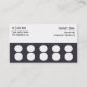 Carte d'Carte de visite de salle de sport 10 Class Pass Card. Utilisez cette carte pour promouvoir vos cours de gym et de fitness. La carte possède 10 espaces réservés de cercle qui peuvent être poinçonnés ou estampillés chaque fois qu'un membre fréquente une classe. Récompensez votre client avec une classe gratuite ou entrez dans votre propre récompense. Entièrement personnalisable, entrez vos propres informations d'entreprise. Idéal pour les entraîneurs personnels, les gymnases, les camps d'entraînement et les cours de fitness.
