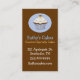Carte de visite élégant de boulangerie fait dans brun et le bleu. Les graphiques mignons d'un petit gâteau de chocolat décore un disque rond bleu, sur l'avant, et les blocs carrés, sur le postérieur pour des timbres de fidélité de client. Personnalisez tous les texte, avant et dos, pour adapter à vos besoins d'affaires.