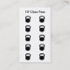 Carte d'entrée de classe Gym Carte de visite 10. Utilisez cette carte pour promouvoir vos cours de gym et de fitness. Le dos de la carte a 10 cachets de cloche qui peuvent être poinçonnés ou estampillés chaque fois qu'un membre assiste à un cours. Récompensez votre client avec classe gratuite ou entrez dans votre propre récompense. Entièrement personnalisable, entrez les informations de votre entreprise. Idéal pour les entraîneurs personnels, les gymnases, les camps de démarrage, l'entraînement de kettlebell et les cours de fitness.