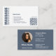 Un carte de visite de massage élégant, blanc et gris, avec une photo fait une première impression instantanée lors des événements de réseautage et avec les clients. Il permet aux clients potentiels de se connecter et de trouver des informations sur les services offerts ou de se mettre en contact pour une enquête avec le massothérapeute. Entrez votre titre professionnel, vos services offerts et l'adresse Web à laquelle se rapporte le code QR. De plus, téléchargez votre photo de profil et entrez votre nom et vos coordonnées pour vous contacter physiquement et virtuellement. Pour obtenir de l'aide sur la personnalisation ou pour discuter d'une conception personnalisée, contactez https://t.me/KBMD3signs_chat.