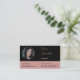 Un carte de visite rose élégant et professionnel propose des espaces réservés sous la forme d'un porte-monogramme rond et le nom de l'entreprise avec des symboles de réseau social personnalisés pour se connecter. Sur le côté avant se trouvent des espaces réservés pour une photo ronde personnalisée avec des champs de texte personnalisés qui incluent le nom, les coordonnées et l'adresse. Il est possible de personnaliser davantage la police, la taille de police, la couleur de police et la couleur de l'arrière - plan et des formes. Si vous avez besoin d'aide ou souhaitez discuter d'un design personnalisé, contactez https://t.me/KBMD3signs_chat.