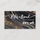 Carte de référence moderne Manicurist Salon à ongles noir et or en marbre. Modifier le nom de l'artiste ongle, remise de référence, profil social et numéro de téléphone, etc.