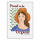 Illustration originale de Sheryl Karas d'une agricultrice biologique portant un chapeau de soleil devant un champ de céréales.