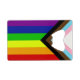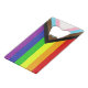 La variante "Progress" du drapeau arc-en-ciel ajoute un chevron le long de l'ascension, avec des rayures noires, marron, bleu clair, rose et blanches pour amener ces communautés (les personnes marginalisées de couleur, les personnes trans, les personnes vivant avec le VIH/sida et celles qui ont été perdues) au premier plan ; "la flèche pointe vers la droite pour montrer le mouvement vers l'avant, tout en étant le long du bord gauche montre que des progrès restent à faire."