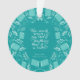 Décorez votre arbre de Noël avec cet ornement livresque turquoise rond comportant les fleurs, le feuille et les livres entourant la citation "combien plus tôt une fatigue de n'importe quoi que d'un livre" - une citation livresque de la fierté et du préjudice de Jane Austen.