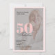 Script Fifty and Fabulous photo overlay pink text 50th birthday invitation that you can personalize and send out for your fiftieth birthday party celebration. The opacity of your uploaded photo and the text colors can be changed using the edit menu.