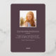 Un élégant design de faire-part de graduation avec une photo de votre diplômé encerclé par une bordure fleurie de feuilles d'or rose et feuillage sur un arrière - plan violet figuier riche. Personnalisez avec le nom de votre diplômé, l'école et l'année de diplôme. Ajoutez un message personnel à l'arrière, ainsi qu'une photo supplémentaire.