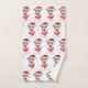 Les étoiles de Noël de la race de chien Wire Fox Terrier ont une aquarelle de Fil Fox Terrier avec un Casquette Père Noël rouge et une écharpe de Noël rouge.