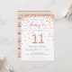 Fêtez l'anniversaire de votre 11 ans avec de l'or coloré, du rose, de la menthe et des confettis turquoises sur ces invitations à l'anniversaire de votre 11e anniversaire ! Avec les détails de la fête de votre fille et un "11" en confetti. Ce design adorable est super mignon et girly.