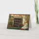 Une carte blanche d'art conçue pour toute correspondance, avec le tableau The Four-Leaf Clover (1873) de l'artiste américain Winslow Homer (1836-1910). La scène représente une jeune fille portant un casquette en paille, tenant un trèfle à quatre feuilles, assise dans l'herbe à côté d'une fenêtre ornée de planteurs de géraniums rouges vibrants L'intérieur de la carte comprend le titre du tableau et le nom de l'artiste.
