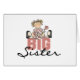 Une conception adorable de grande soeur comportant une fille s'asseyant sur le texte qui lit la "GRANDE soeur" tenant un groupe de roses roses sur le T-shirts de grande soeur, sacs fourre-tout, autocollants, boutons, tasses, et plus.