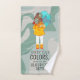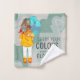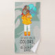 Fille avec parapluie dans l'ensemble de serviettes de toilette de citation positive du vent. Ce dessin représente une fille debout dans le vent, son dos tourné vers le spectateur. Elle tient un parapluie. Les cheveux de la fille sont soufflés dans le vent. Le texte positif dit "Portez vos couleurs même les jours les plus nuageux".