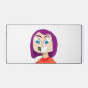 Dessin d'une fille aux cheveux violets et un grand sourire