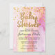 Tellement tendance, cette invitation présente un arrière - plan d'aquarelle rose et des lettres et confettis en faux or tombant dans l'arrière - plan.
