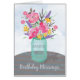 Envoyez vos bénédictions de fille non seulement pour son anniversaire, mais tout au long de l'année. De jolies fleurs d'aquarelle dans un vase en bocal de maçon sont posées sur une nappe rayée. Carte d'anniversaire religieuse parfaite pour votre fille.