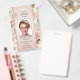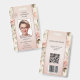 badge d'identité photo professionnelle et chic avec votre photo personnalisée et logo sur un arrière - plan rose floral. À l'arrière, vous pouvez ajouter un code à barres personnalisé et un code QR ainsi que des textes supplémentaires ou supprimer les modèles.