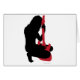 Silhouette d'une fille avec une guitare. La fille est dans le noir et la guitare est en rouge.