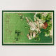 Grand puzzle avec une charmante jeune Irlandaise qui n'a pas peur de s'envoler dans les airs sur une pipe avec un ruban vert comme harnais. Entourée de trèfles, elle est une chaleureuse salutation de la Saint-Patrick.