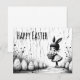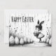 Une illustration élégante en noir et blanc mettant en vedette une jolie fille avec des oreilles de lapin tenant un panier d'œufs de Pâques. La scène minimaliste et légèrement fantaisiste allie charme artistique et esthétique moderne de Pâques.