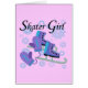 Notre T-shirts de conception de fille de patineur, tasses, sacs, cartes, coussins, horloges murales, souvenirs, sweat - shirts à capuche, et d'autres articles de patinage de thème comporte une paire de patins de bleu et de lavande et des mitaines sur une ficelle entourée par un bon nombre de flocons de neige hivernaux et de texte qui lit la fille de patineur !