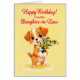 Une jolie carte d'anniversaire pour une belle-fille. Un chiot en peluche tenant un bouquet de fleurs et disant "Joyeux anniversaire". Célébrez un anniversaire avec cette carte irrésistible présentant un chiot sucré tenant un bouquet de fleurs de marguerite, parfait pour faire fondre les coeurs.
