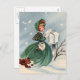 Illustration vintage montrant une petite fille blonde mignonne en Green Coat Mailing Cartes de Noël