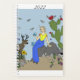 Une fille en jeans, faite dans un style de dessin animé, assise sur un rocher entouré par la flore et la faune locales du sud-ouest. Parmi les créatures, on compte des colibris à cornope et à cornichons, un lapin, une souris, un chien de compagnie, plusieurs oiseaux chauds, des cactus en fleurs, un cerf, des plantes à herbe oculaire, quelques papillons, des fleurs de coquelicots et des tournesols de prairie. Il reste de la place pour personnaliser cet article et l'année peut être changée ou supprimée.