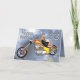 Une fille blonde couchée à travers une moto à hélicos avec des étoiles et des nuages dans l'arrière - plan. Une belle carte d'anniversaire pour les amateurs de moto.