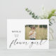 Demandez à votre membre de la famille d'être votre fille fleur avec une carte photo mémorable et réfléchie avec votre Fille Fleur Petite Photo Invitation Proposition. Conçu pour s'adapter également aux photos plus petites. Horizontal / Paysage / Vertical toute orientation.