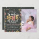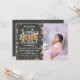 Invitation d'hiver avec photo avec des flocons de neige en or et parties scintillant rose pour célébrer le premier anniversaire de votre petite princesse. Arrière - plan de tableau de bord.