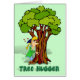 Hugger. Dessin d'une jeune fille qui embrasse un arbre avec les mots Tree Hugger en dessous d'elle. Timbre-poste correspondant disponible.
