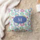Joli et élégant moderne coloré vert rose turquoise points fleurit coussin motif avec monogramme pour personnaliser avec votre initial.