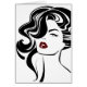 Joli, vintage thème girly en noir et blanc. Un beau visage de femme aux lèvres rouges et aux cheveux bouclés. Amusant, dessin rétro.