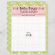 Amusez vos invités de baby shower avec ce jeu de bingo amusant pour bébé! Ils doivent inscrire les articles du registre des bébés dans les boîtes ouvertes qui, selon eux, seront ouvertes en premier. Comme la maman à être ouvre ses cadeaux, l'invité marquera tous les objets correspondants. Le premier à obtenir 5 de suite gagne!