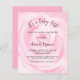 Gros plan d'une rose rose rose, fleur douce et aquarellée. Personnalisez et ajoutez le nom de la future maman et les détails de la fête. 1 feuille = 1 invite imprimé bord à bord.