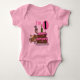 Un design de premier anniversaire mignon pour les tee-shirts, costumes, cartes, poste, magnets, et autres vêtements d'anniversaire et cadeaux avec un singe, un gâteau au chocolat avec garniture rose, un ballon rose, et le texte qui dit "Je suis 1"!